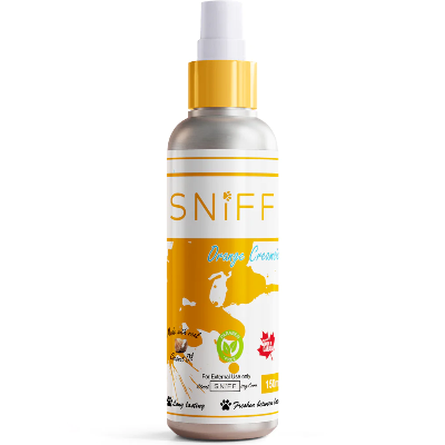 Premium Dog Deodorizer made with Coconut Oil, Purified Water, Grape Seed Extract and Fragrance. Soothes dry skin, scent is long-lasting, conditions coat and eliminates doggy dandruff.